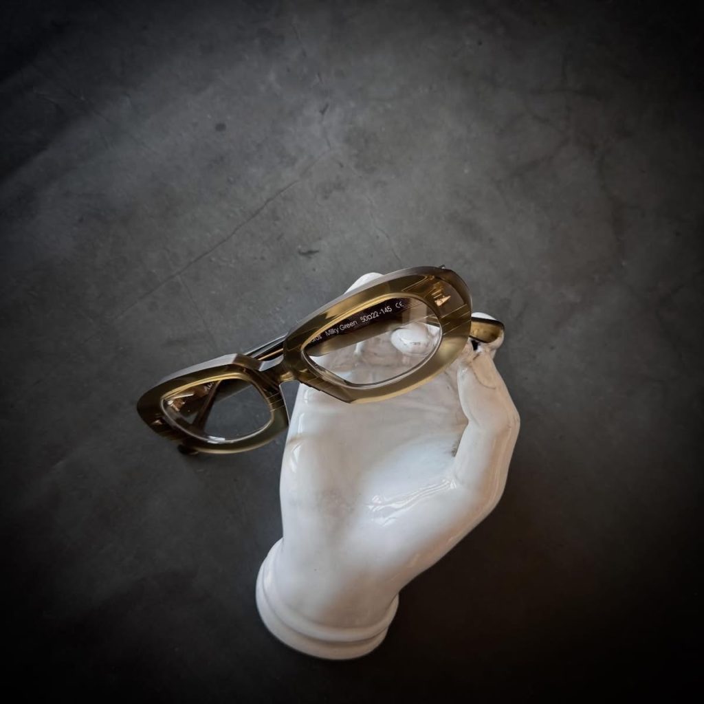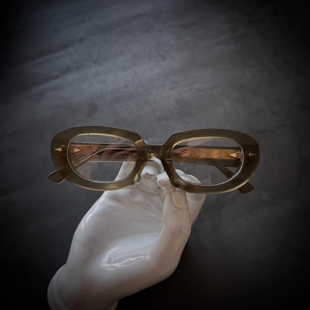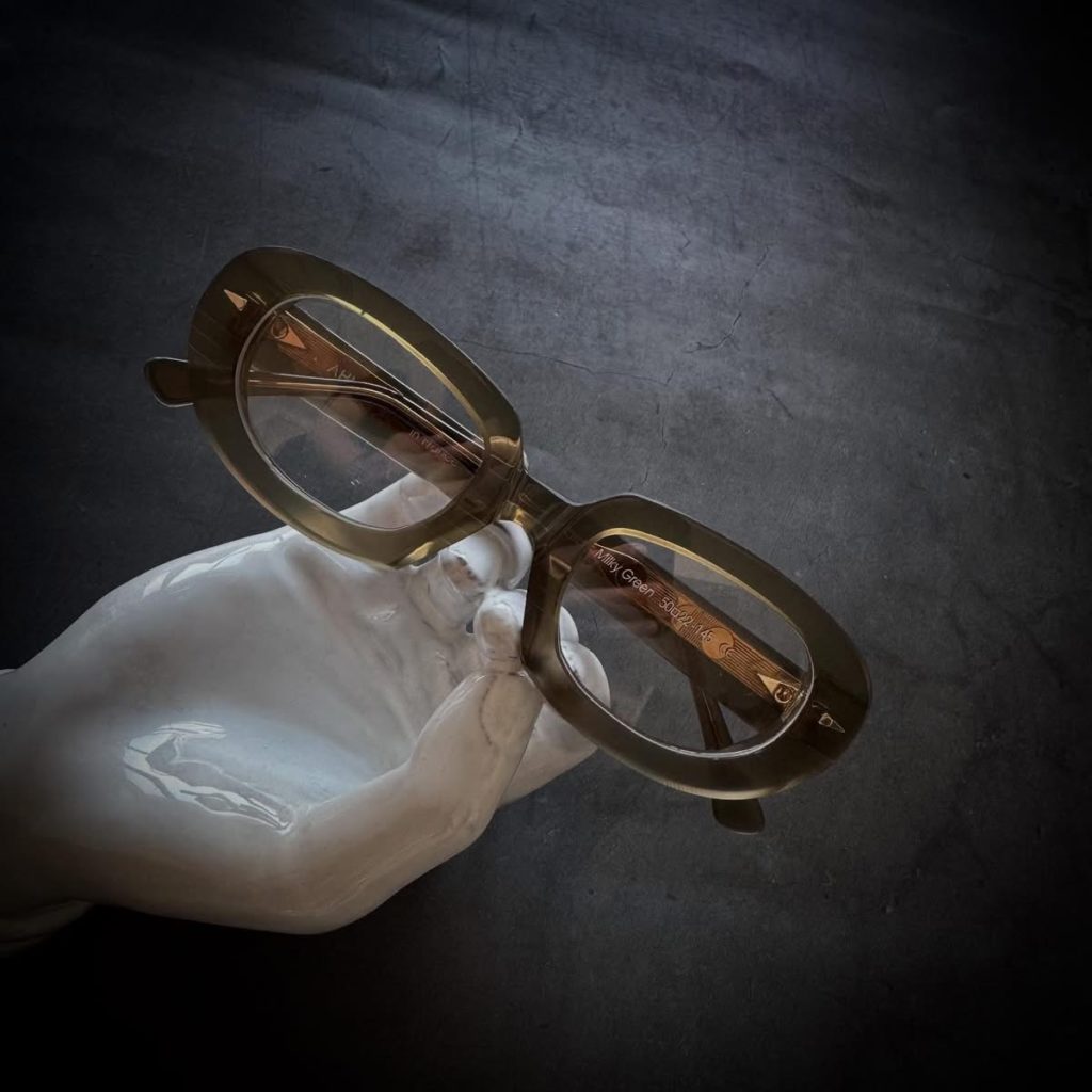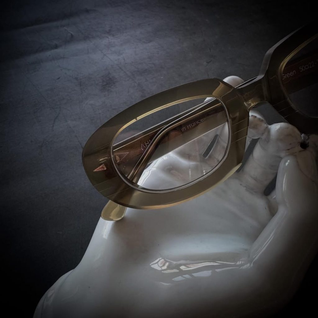 ボリューム感がありセンス溢れるオーバルシェイプに加えてフロントには大胆なカッティングが施されているAHLEMの超人気モデルが入荷しております。落ち着いた透明感あるカーキカラーで顔馴染みよく素敵なモデルです。