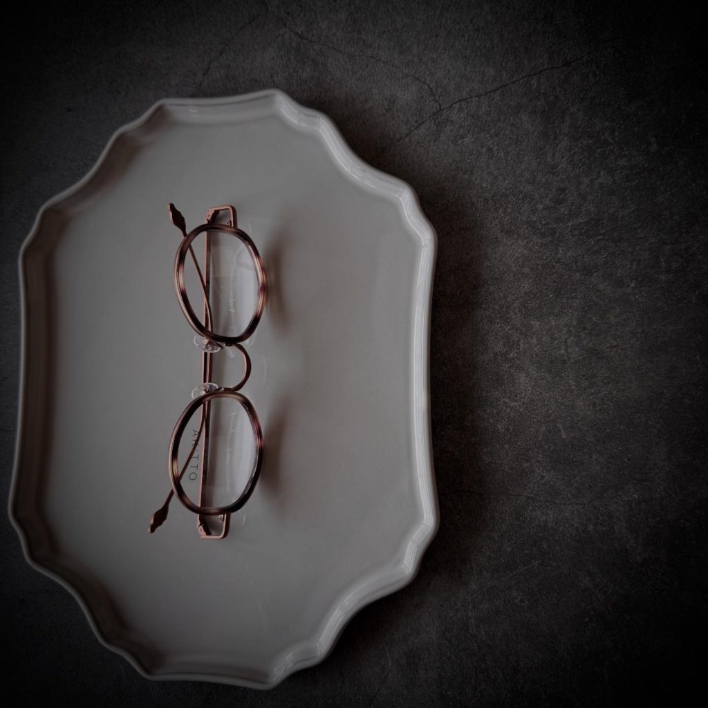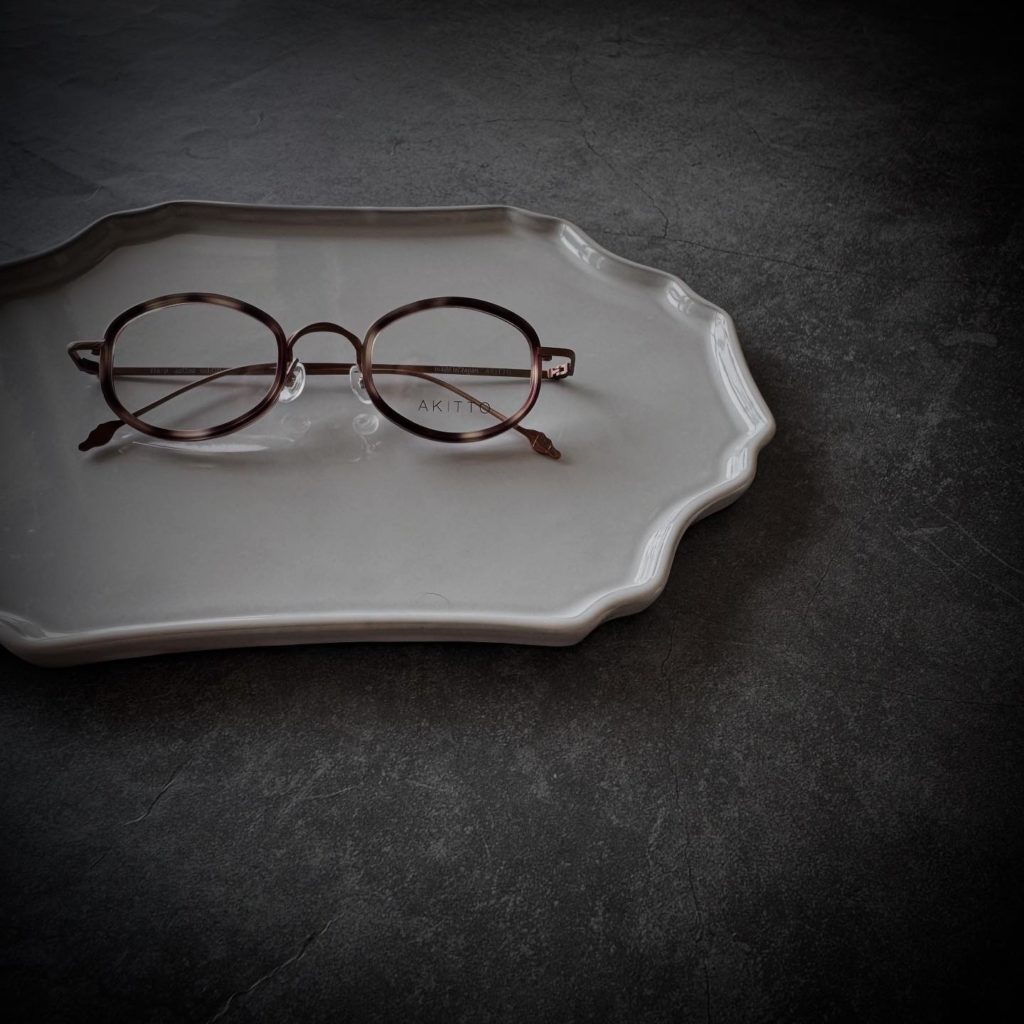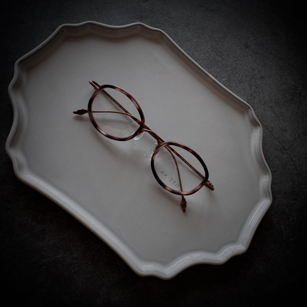 馬車をイメージしたレンズシェイプに馬型テンプルエンドに加えて手綱モチーフのテンプルパターンが素敵なAKITTO新作モデル。編み込みパターンのブリッジとインナーアセテート仕様により度数が強めの形にもオススメすることが出来ます。