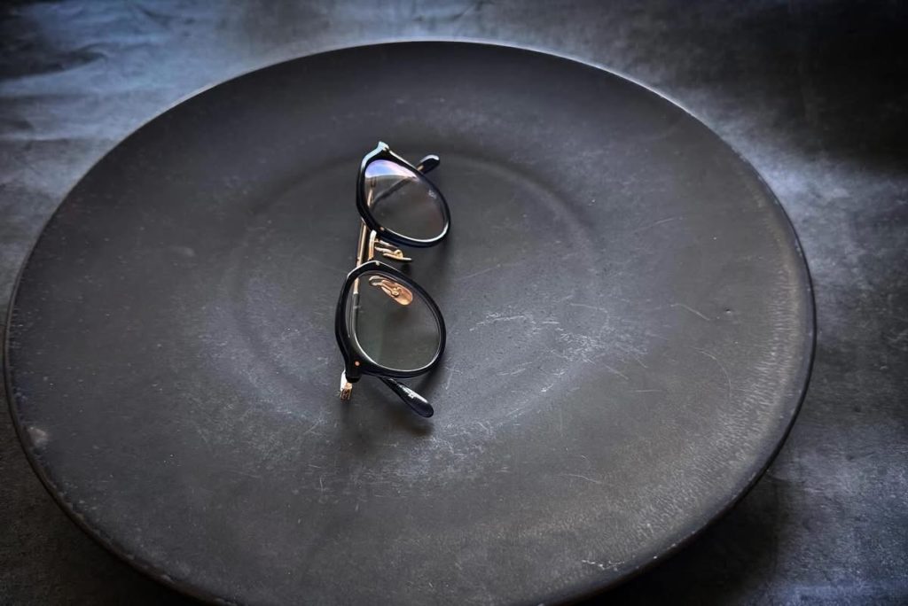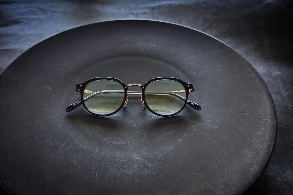 上質感ある彫金とデザインが素敵なYELLOWS PLUSのコンビネーションモデル。やや小ぶりのクラウンパントシェイプで小顔の方や度数の強めの方にオススメが出来ます。