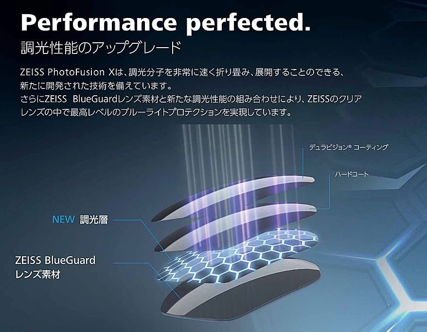 屋内では柔らかく落ち着いたトーンに、屋外では深みのあるカラーへと変化し、日常から特別なシーンまで自然にフィットし、PhotoFusion Xならではの高速な調光性能により、常に快適な視界を保ちながら、機能性とデザイン性を高い次元で両立します。